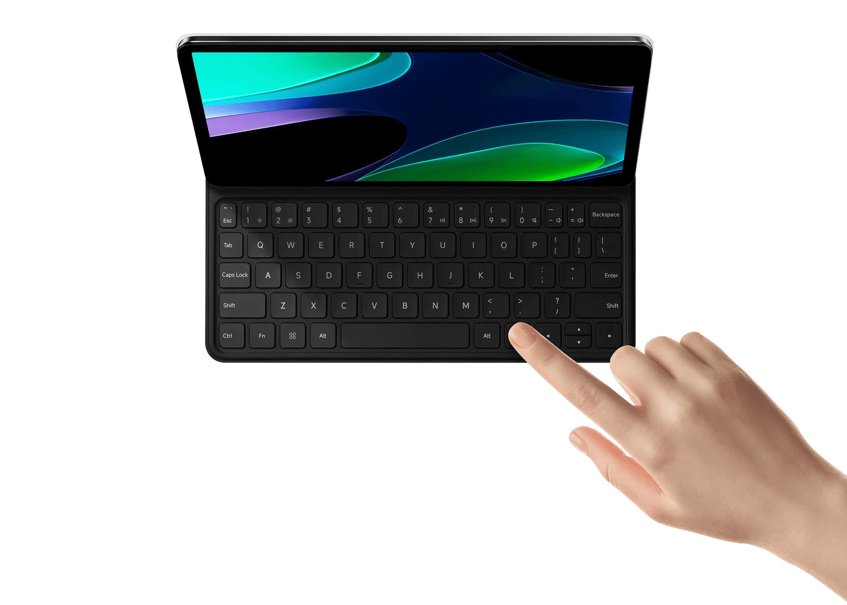 El teclado cuenta con un diseño de 64 teclas que está pensado para ofrecer una experiencia de escritura óptima. La distribución ergonómica y la distancia de recorrido de tecla de 1,3 mm aseguran una presión de respuesta perfecta, lo que se traduce en una escritura cómoda y precisa. Además, incluye teclas especiales como la tecla Esc para cancelar y salir rápidamente, y la tecla Fn que permite combinaciones de accesos directos, ofreciendo un control rápido y eficiente de la tablet.