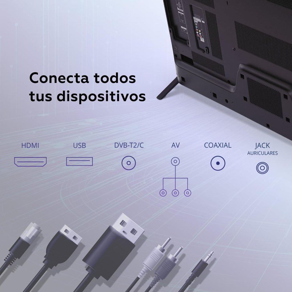 El televisor incorpora tecnología Dolby Digital Plus, lo que mejora la calidad del audio en comparación con modelos básicos sin esta función. Los altavoces integrados ofrecen un sonido claro y equilibrado, aunque, como es habitual en televisores de este tamaño, los graves son limitados debido al pequeño espacio disponible para los altavoces.