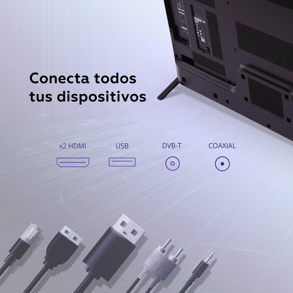 La resolución HD (1366 x 768 píxeles) es adecuada para el tamaño de pantalla, garantizando una imagen nítida y clara. Aunque no alcanza la resolución Full HD, para un televisor de este tamaño, la diferencia es apenas perceptible en distancias de visualización habituales.
