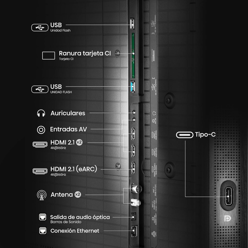 En conectividad incluye HDMI 2.1, USB, Ethernet, WiFi y Bluetooth, lo que permite conectar consolas, barras de sonido y otros dispositivos sin problemas. Esto lo consideran las opiniones sobre la Hisense U8Q coinciden en que es un televisor muy completo en conexiones, algo que se mantiene en todos los tamaños de la serie.