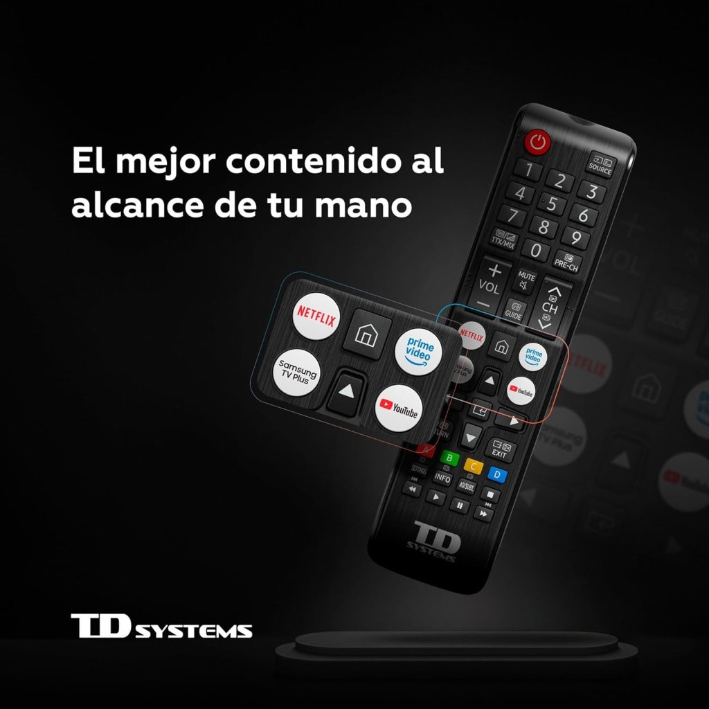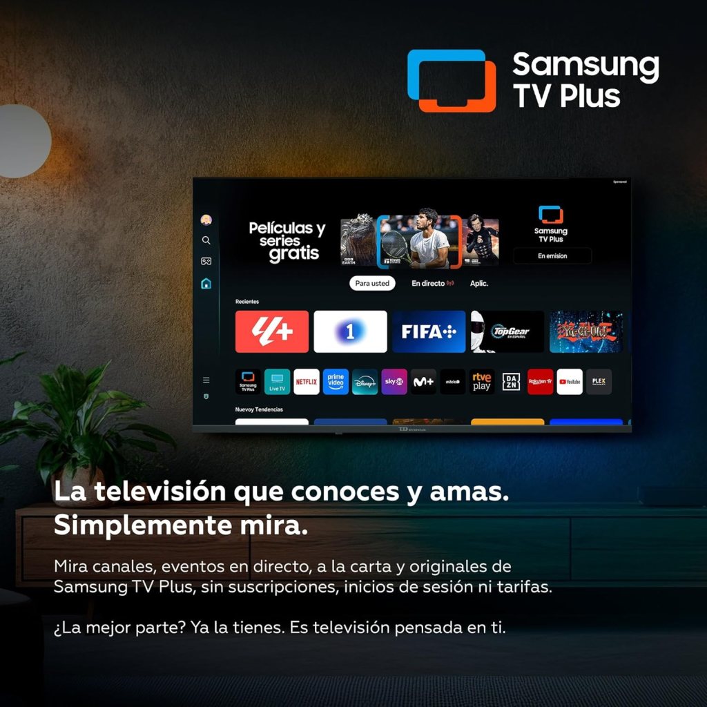 La interfaz es rápida, intuitiva y con acceso a aplicaciones como Netflix, Prime Video, Disney+ o YouTube. Además, incluye Samsung TV Plus, con canales gratuitos sin suscripción, algo que aporta bastante valor en el día a día. Si buscas TD Systems opiniones, este es uno de los puntos mejor valorados.